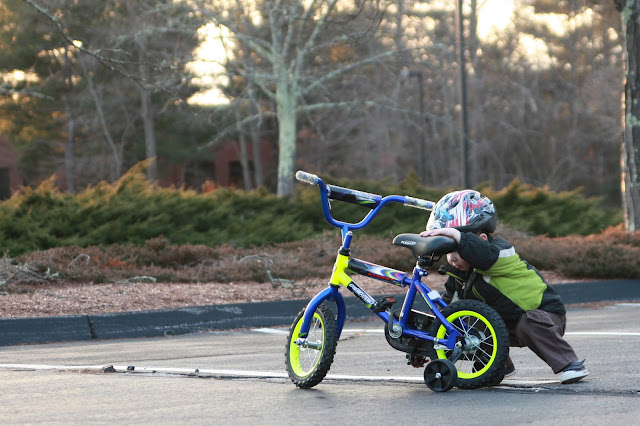 I'll try and do this every Sunday, then on Friday I'll do my daily pics. Work for you? Good, I thought so! So this weekend was a bit of a cleaning frenzy. Mainly the playroom. A once over, for sure, from top to bottom! We took EVERYTHING out, dusted everything, vacuumed everything, then washed the carpet. Of course, even with the windows open, the carpet hadn't dried and the Fisher Price tornado had to stay out in the living room and dining room over night and into Sunday. Ugh, Mark was not happy about this. So we took Cam to an empty parking lot so he could practice his bike for the first time (which he had gotten for his second birthday, a year ago!!) So, along with many other really cute pictures, this was the one I choose for my weekly ABC picture: